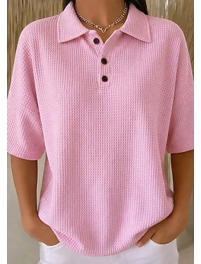 Mulheres Camisa Waffle Tops de verão Botões Côr Sólida Vintage à moda Sem Manga Colarinho polo Tops longos Diário Ao ar livre Feriado Amarelo Verde Claro Rosa Verão Primavera Outono