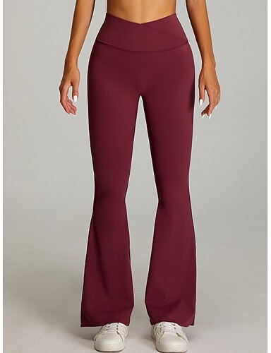 Mulheres Parte inferior do sino chinês Férias Roupa de rua Casual Comprimento total Cintura Média Tecido Cintura elástica Confortável Conforto Elasticidade Alta Diário Ao ar livre Ginásio Marron