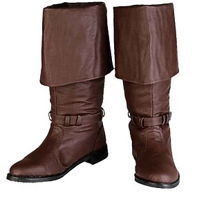 botas masculinas de couro sintético marrom pirata – design de punho dobrável com detalhes de fivela, perfeitas para fantasias, feiras renascentistas e eventos temáticos