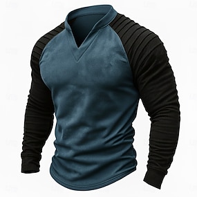 Homens T-shirt Camisa de manga longa Manga Longa Decote V Outono Inverno Côr Sólida Vintage Diário Retro Franzido Bloco de cor Ao ar livre Rua Casual Azul Marron Caqui Top Tee para Homens