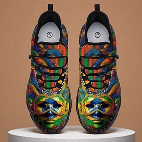 Tênis Masculinos de Máscara com Plumas Vermelhas e Amarelas de Mardi Gras – Estilo Chamativo de Carnaval Tênis Casuais Leves para Celebrações de Carnaval