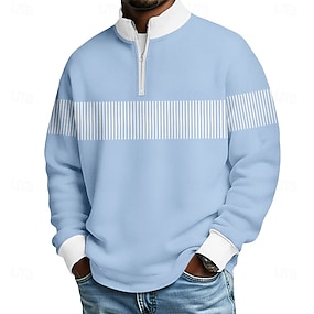 Homens Tiras Horizontais Camisas Polo com zíper Manga Longa Camisas polo colarinho do vovô Casual Escola Roupa Esportiva Feriado Roupa Diária Impressão 3D Polo com fecho de correr de um quarto