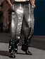 calças masculinas estampadas com cenas de natal, calças casuais de floco de neve para negócios, calças com estampa 3D para uso ao ar livre, para trabalhar, poliéster, preto e branco, vinho, amarelo,