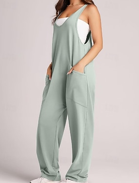 Mulheres Normal Macacão Roupa de rua Côr Sólida Sem Manga Decote U Bolsos Rua Para Noite Normal Rosa Marron Verde Verão