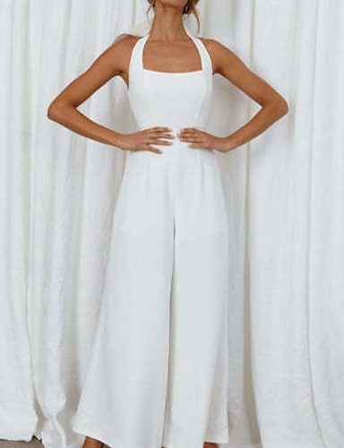 Mulheres Normal Macacão Elegante Côr Sólida Sem Manga Perna larga Halter pescoço Frente Única Diário Férias Ajuste Largo Branco Verde Claro Rosa Verão