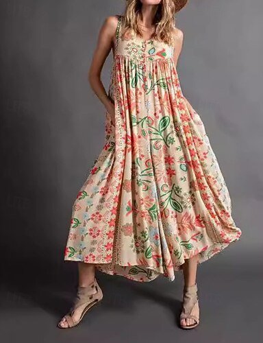 Mulheres Normal Macacão Casual Floral Sem Manga Decote U Imprimir Rua Para Noite Normal Rosa Verde Tropa Vermelho Verão