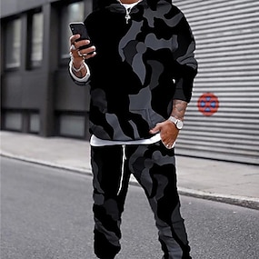 Homens Côr Camuflagem Estampas Abstratas Moletom Moletons Roupa de rua Designer Básico Casual Grande e Alto Manga Longa Com Capuz Diário Desportos e Ar livre Esportes Feriado Azul Verde Tropa