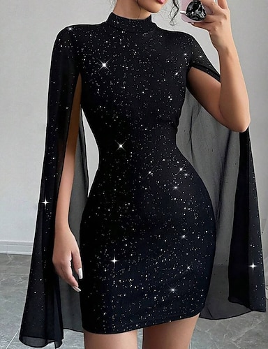 Mulheres Minivestido Vestido preto Vestido de formatura Vestido de festa Vestido Coquetel Elegante Moderno Festa Coquetel Normal Tecido Manga Longa Gola Alta Preto Primavera Outono