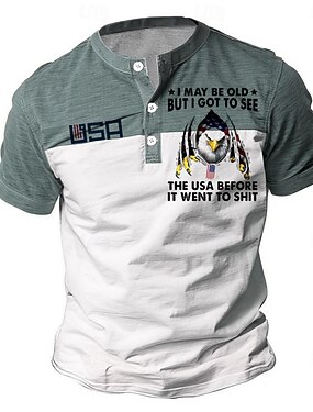 Camiseta Gráfica Masculina de Manga Curta Henley - Não Deixe o Velho Entrar Design Patriótico da Bandeira Americana