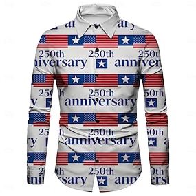 250º Aniversário EUA Retro Vintage Anos 70 Camisa Camisa Aloha Manga Comprida Hippie Geométrico Étnico Fantasia Homens Baile de Máscaras 4 de julho Festa Adulto Camisa