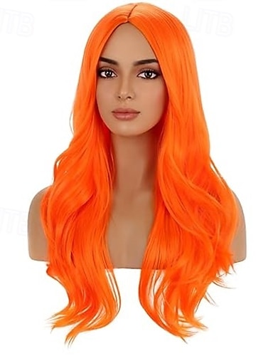 Peruca de Carnaval 2026 Laranja Ondulado Ondas Soltas 28 polegadas Peruca sintética para festivais Mardi Gras Parada Cabelo para fantasia de cosplay para Feminino