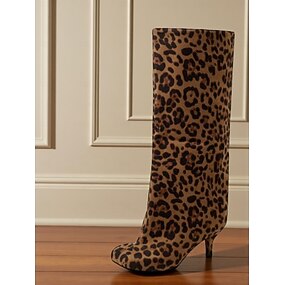 Botas femininas de salto agulha com estampa de leopardo - botas sensuais de bico fino e salto alto para festas noturnas e baladas