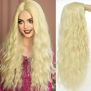 Peruca Loira - Perucas Longas e Onduladas para Mulheres com Parte Central Sem Renda Peruca Sintética Cacheada Natural de 26 polegadas Fiber Resistente ao Calor para Uso Diário e Festas de Halloween
