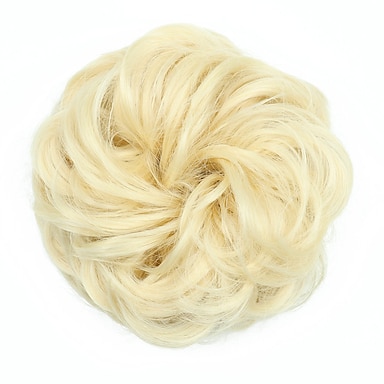2 peças de aplique de cabelo para coque bagunçado, grande, ondulado e cacheado, com elástico, scrunchies, coque rosquinha volumoso e grosso, apliques para penteado preso, extensões, loiro acinzentado