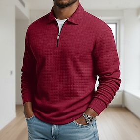 Homens Camisas Polo Waffle Textura Casual Ao ar livre Com Zíper Quarter Zip Manga Longa Moda Moderno Côr Sólida Textura Zip Up Primavera & Outono Todas as Estações Normal Preto Branco Vinho Azul