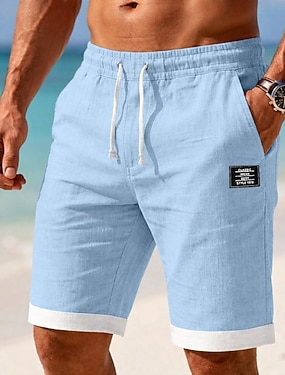 Homens Calção Shorts de linho Shorts de verão Shorts de praia Com Cordão Bolsos Cintura elástica Bloco de cor Cor Única Conforto Respirável Curto Casual Diário Praia Férias Moda Preto Azul Marinha
