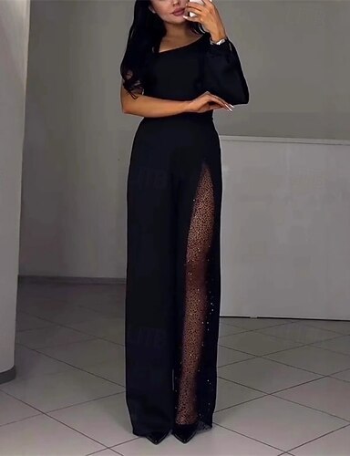 Mulheres Macacão Roupa de rua Côr Sólida Manga Longa Perna larga Assimétrico Com Transparência Férias Diário Normal Preto Branco Vinho Primavera