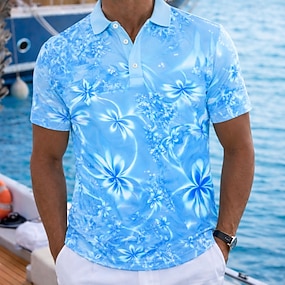 Homens Floral Camisas Polo Havaianas Manga Curta Camisas polo Lapela Casual Recorrer Roupa Esportiva Roupas de férias Impressão 3D Botões Primavera Verão Azul Azul Marinha Roxo