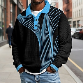 Homens Bloco de cor Geométrico Camisas Polo Waffle Manga Longa Camisas polo Camisas de colarinho Business casual O negócio Vestir para trabalhar Roupa Diária Impressão 3D Botões Primavera Outono