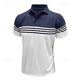 Homens Camisa polo de algodão Camisas Polos de Golfe Trabalho Casual Lapela gola pólo com nervuras Manga Curta Básico Moderno Bloco de cor Patchwork Botões Primavera Verão Normal Azul Preto Claro