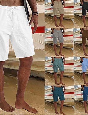 Homens Calção Shorts de linho Shorts sociais Shorts de verão Zíper Bolsos Botões Tecido Conforto Macio Comprimento do joelho Ao ar livre Diário Para Noite Moda Roupa de rua Branco Azul Céu