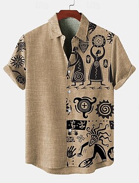 Homens Camisa Social Camisa de linho Camisa Popover camisa de verão camisas retrô Camisa étnica Geométrica Férias Rua cáqui Manga Longa Decote V Verão Primavera Roupa