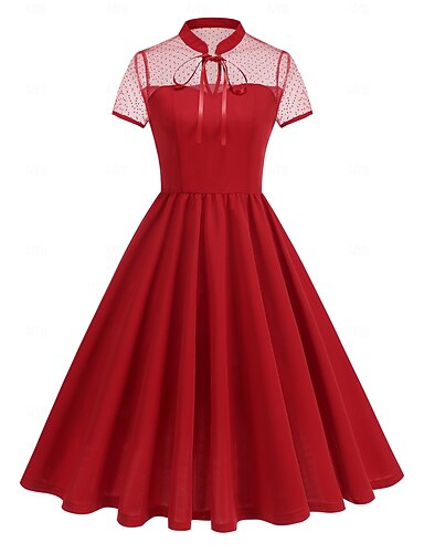 Anos 50 Hepburn Retro Vintage Meio-dia Vestido de uma linha Vestido swing Vestido Flare Mangas curtas Linha A Fantasia Mulheres Carnaval Dia dos namorados Baile de Máscaras Férias Dia a Dia Festa de
