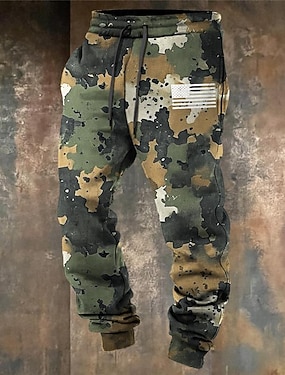 Homens Bandeira americana Patriótico Calças Esportivas Corredor Calças Cintura Média Cintura elástica com cordão Traje de festa para noite Dia a Dia Bolsos Primavera Outono Inverno Impressão 3D Preto