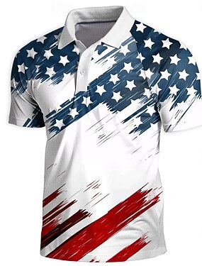 4 de julho de 2026 250º Homens Bandeira americana Pólo Manga Curta Camisas polo Camisas de colarinho Vintage Casual Ao ar livre Roupa Esportiva Impressão 3D Botões Verão Azul Branco