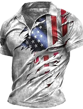 Homens Bandeira americana veteranos Patriótico Camisas Polo Camisa de golfe Manga Curta Camisa Aberto para a Lateral Diário Praia Impressão 3D Branco 3D Botão para baixo Roupa Moda Casual Confortável