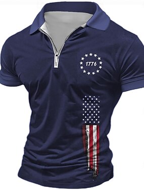 4 de julho de 2026 250º Dia da Independência Homens Bandeira dos EUA Polo com zíper Manga Curta Aberto para a Lateral Vintage Casual / esportivo Casual Desportos e Ar livre Impressão 3D Verão Preto
