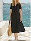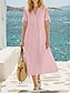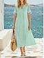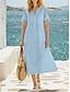Mulheres Vestido midi Vestido de turno Férias Casual Diário Normal Tecido Manga Curta Colarinho de Camisa Preto Branco Azul Verão Primavera