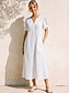 Mulheres Vestido branco Camisetão Minivestido Encontro Férias Algodão E Linho Básico Moderno Colarinho de Camisa Botão Bolsos Manga Curta Verão Primavera Ajuste Largo Tecido