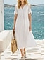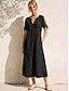 Mulheres Vestido Longo Vestido da bainha Vestido Envelope Casual Diário Praia Feriado Normal Tecido Manga Curta Decote V Branco Verão Primavera