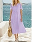 Mulheres Minivestido Vestido branco Vestido de linho de algodão Férias Casual Feriado Forma Assenta Tecido Manga Curta Gola Redonda Branco Azul Claro Verão Primavera