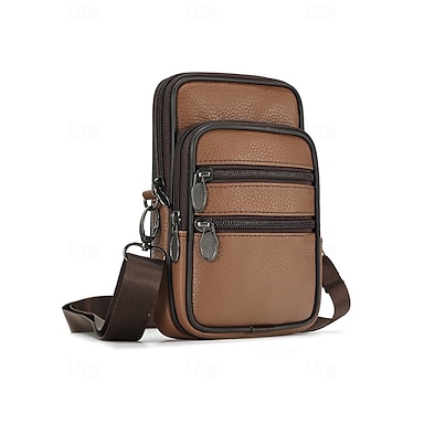 bolsa de ombro transversal de couro masculina com design multibolsos, pequena bolsa de viagem tipo mensageiro e bolsa de cintura para uso diário casual e atividades ao ar livre