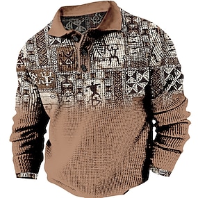 Homens Folk Camisas Polo Pullover Manga Longa Camisas polo Colarinho Vintage Casual Diário Streetwear Impressão 3D Botões Outono & inverno Marron Verde Tropa