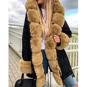 Mulheres Casaco de inverno Casaco de pele falsa Manter Quente Confortável Patchwork Bolsos Peles e couros Moda Casual Tecido Férias Rua Casual Roupa Diária Longo Com Capuz Normal Manga Longa agasalhos