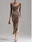 Mulheres Vinho Marron Verde Outono Inverno Vestido midi Vestido da bainha Aniversário Formal Vestidos Semi-Formais Formal Casamento Encontro Normal Decote V