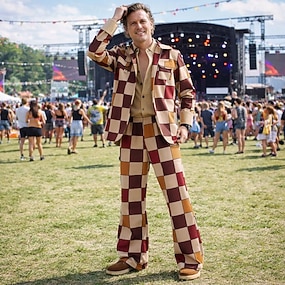 Conjunto Retro Vintage Anos 70 Calças Camisa Manga Comprida Hippie Discoteca Xadrez / Guingão Fantasia Homens Dia Das Bruxas Carnaval Festival de Música Festa Temática Retro Adulto Camisa Calças Verão
