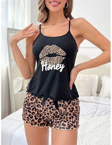Vestido de dia dos namorados feminino pijama camisola leopardo moda quente conforto casa diária cama cetim seda respirável alças sem mangas verão casa roupas