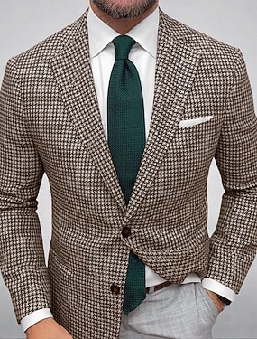 Homens Jaqueta Blazer Casaco esportivo Colar de entalhe Moda Casual Houndstooth Blazer Marron Moderno Dois botões de peito simples