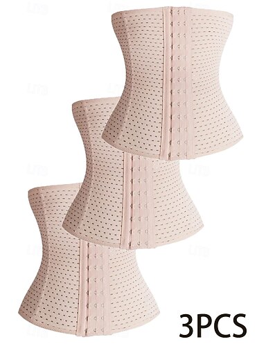 Conjunto de 3 peças de cinta modeladora feminina com controle abdominal, efeito push-up, fechamento frontal, ideal para atividades como ir ao escritório, dirigir, academia e esportes. Respirável, cor