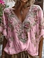Mulheres Camisa Social Flor Diário à moda Básico Meia Manga Decote V Tops regulares Diário Feriado Imprimir Amarelo Rosa Bege Primavera Outono
