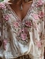 Mulheres Blusa Floral Gráfico Vintage à moda Meia Manga Decote V Tops regulares Diário Feriado Para Noite Impressão 3D Preto Branco Rosa Verão Primavera Outono Inverno