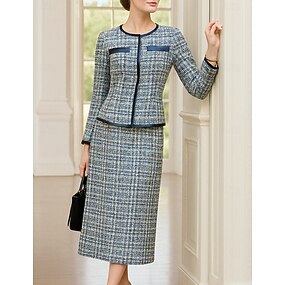 Mulheres Blazer Diário Para Noite Outono Inverno Padrão Casaco Normal Térmico / Quente Da Moda Elegante Casaco Manga Longa Xadrez Imprimir Rosa Camelo Azul empoeirado