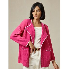 Mulheres Carregam Aberto para a Lateral Estriado Tricotar Misto de Lã Bloco de cor Ombro caído Outono & inverno Casual / Diário Casual Diário Manga Longa Cor de contraste Vermelho Rosa S M L