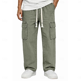 Homens Calças Cargo Calças Calça casual 100% Algodão Calças com lavagem ácida Com Cordão Bolso multi Perna reta Tecido Conforto Respirável Comprimento total Casual Diário Ao ar livre Moda Estilo