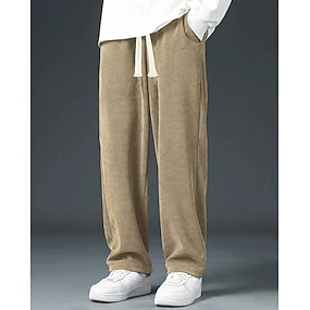 Homens Calças Calças de Veludo Calças largas Calça casual Calça de moletom de perna reta Com Cordão Perna larga Côr Sólida Conforto Comprimento total Casual Diário Ao ar livre Moda Estilo Clássico