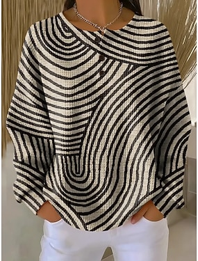 Mulheres Moletom Botões Gráfico Geométrica Elegante Vintage Moda Manga Longa Gola Redonda Decote Redondo Tops regulares Casual Casa Convidado do casamento Azul Preto e Branco Branco + azul Gray